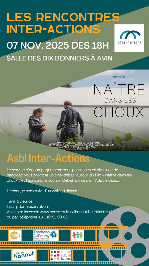 La projection du court-métrage "Naitre dans les choux", un documentaire de 26min sur l'agriculture sociale, se fera dans le cadre de la première édition des "Rencontres d'Inter Actions".